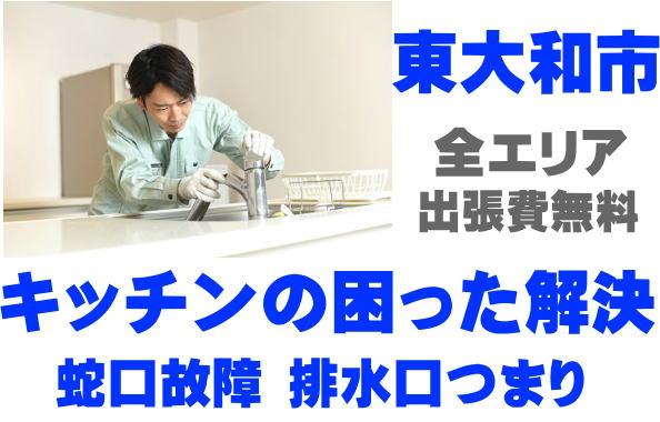 東大和市で台所のトラブルはお任せください。蛇口の水漏れ、排水つまり、ディスポーザー詰まりなど緊急対応いたします。