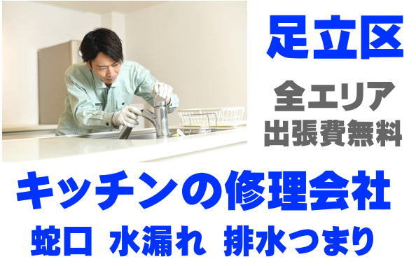足立区台所水道の水漏れ/排水管の水漏れ,足立区県キッチン排水溝に物を落とした,足立区台所のお湯が出ない/水が出ない,足立区台所の水漏れ/キッチン下の水漏れ,足立区キッチン排水口のつまり/流れが悪い,足立区キッチン蛇口の水漏れ/パッキン交換,足立区台所排水のにおい/ディスポーザーのつまり,足立区キッチンのリフォーム,足立区台所のパイプ修理,足立区台所の水道トラブル,足立区キッチンの水道修理,足立区キッチンの水回り修理,足立区キッチン蛇口が折れた/とれた/固い/空回りする,足立区台所蛇口(水栓)の交換/取り付け/取り外し,足立区流し/シンク/お勝手の水漏れ、つまり